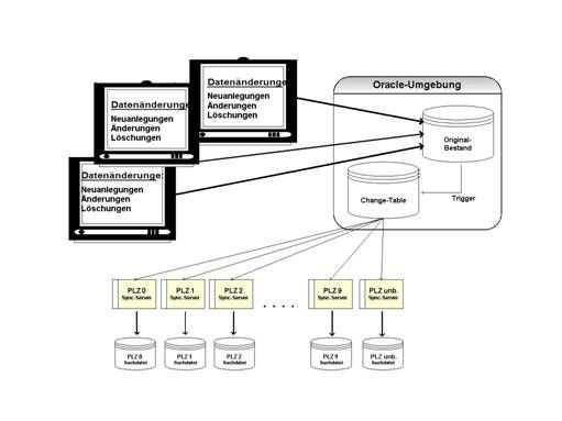 Ziel ist es, eine fehlertolerante , performante und synchronisierte Online-Suche auf einem derzeitigen Gesamtbestand von mehreren Millionen Adressen bereitzustellen, wobei die erforderliche Hard- und Software den Erfordernissen angepasst werden kann und derzeit nicht vorgegeben ist.
